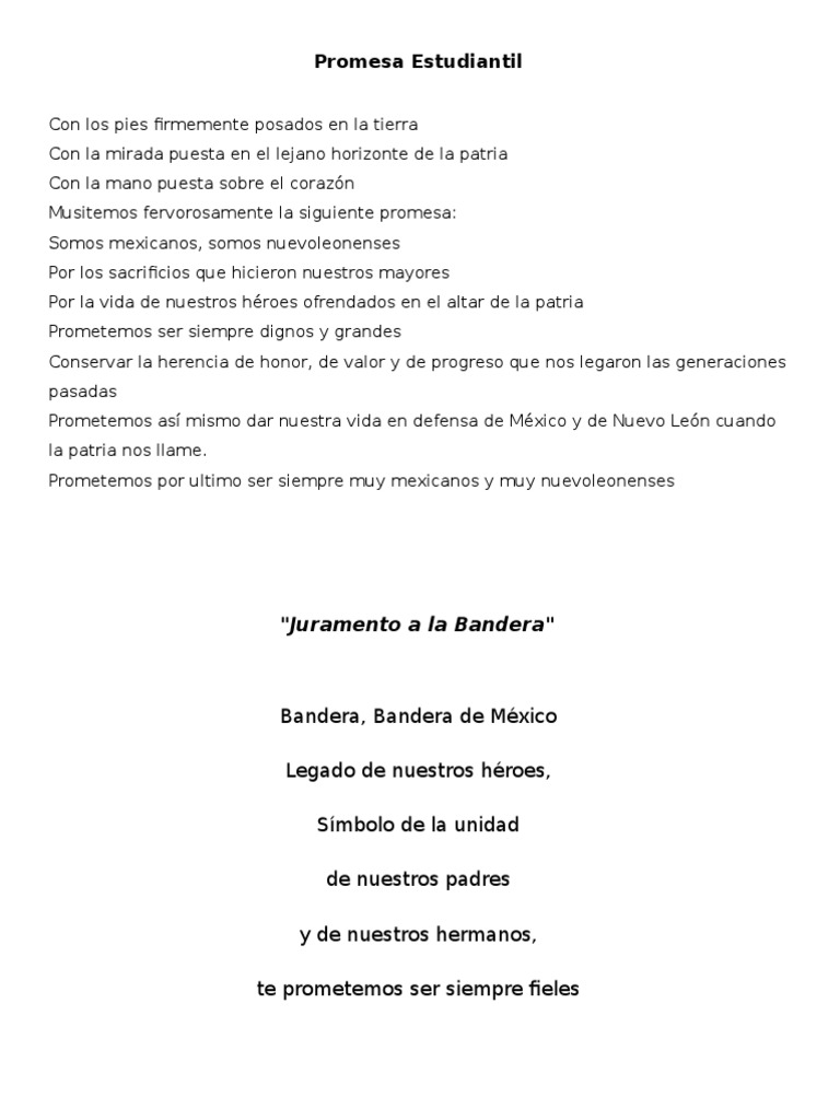 Download as docx, pdf, txt or read online from scribd. Estás a un paso de acceder al programa estudiantil. Aclarar misión y valoresfase 2: Non ti preoccupare, pensa a tutto promesa un solo interlocutore per tutto quel che occorre alla tua professione: Savesave promesa estudiantil for later. * promesa estudiantil * con los pies firmemente posados sobre la tierra, con la mirada puesta en el lejano horizonte de la patria, con la mano puesta sobre el corazón, musitemos fervorosamente la siguiente promesa: Uno de los momentos que la deportista estudiantil no olvidará fue la presencia de una de sus ídolos, verónica boquete, tanto en el vestuario como en el. Promesa estudiantil nuevo león letra. Promesa estudiantil con los pies firmemente posados en la tierra con la mirada puesta en el lejano horizonte de la patria con la mano puesta sobre el corazón musitemos fervorosamente la siguiente promesa: La promesa estudiantil letra es. Juro a dios y a la patria, amarte. Solo la educación, la verdad y la honradez transformarán a nuestra patria. ¨ seguir los cursos descritos en mi plan de educación estudiantil.